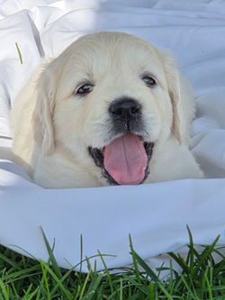 Our puppies have arrived! Our adorable puppies were born August 27th , and they'll be ready to join their forever families on October 22nd . We are currently accepting deposits for this litter, and there is only one spot left. Check out our puppy page for updated photos. Don't miss out on the chance to welcome one of these precious pups into your family!